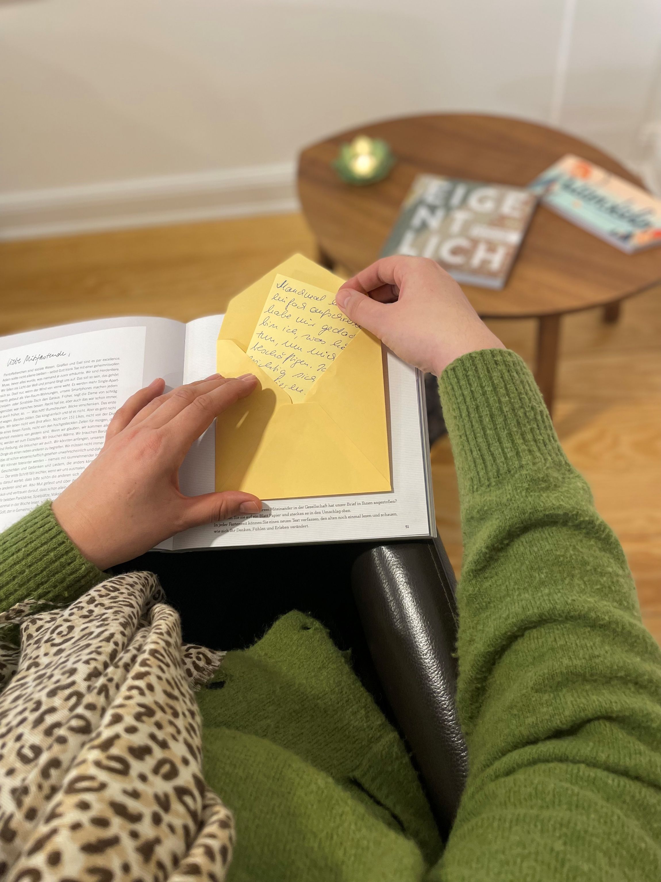 ANDERE ZEITEN ERLEBEN Auch im Andere Zeiten-Haus wird gefastet. Kirsten Westhuis schreibt schon fleißig ihre Gedanken zu den Briefen in unserem Buch Eigentlich auf und füllt damit die im Buch eingeklebten Umschläge. Machen Sie auch mit? Wenn Sie mögen, können Sie Ihre Gedanken zu unseren Briefen auch per Mail an fasten@anderezeiten.de mit uns teilen.
