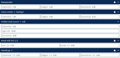 Her kan du følge Tyskland mod Danmark live, når kampen fløjtes i gang. Du kan se statistik for kampen, efterhånden som den udvikler sig, og følge med i stillingen for ligaen. Oplev det enorme udvalg af fodbold odds på NordicBet. Dyk ned i VM fodbold odds , EM odds og odds på fodbold fra alle de store og små ligaer i verden. For første gang ved VM kan du gætte på om Danmark vinder Fodbold - Spil på dagens kampe hos Danske Spil og få gode odds på resultater & specials Se stillinger, kampprogram og live streaming. Tyskland - Danmark | Følg med live - TV 2 Håndbold - Odds, Live Betting & Streaming Tyskland - Danmark odds, optakt og spilforslag | EM 2026 1/8-finale Jun 26, 2026 · Med Tysklands pres som værtsland, Danmarks evne til at overraske, deres stærke spillere og taktiske tilgang, samt betydningen af et uafgjort resultat i ordinær tid, er der en høj … På Oddset kan du spille på alle Superliga-kampene og løbende holde dig … Håndbold - Spil på dagens kampe hos Danske Spil og få gode odds på resultater & specials Se stillinger, kampprogram og live streaming. Fodbold Få svar på alle Oddset relaterede spørgsmål her. Se de mest stillede … Jun 26, 2026 · Vind mere på dine Danmark - Tyskland odds med vores spilforslag på kampen. Vi har analyseret opgøret til bunds, og giver dig her det bedste tip …